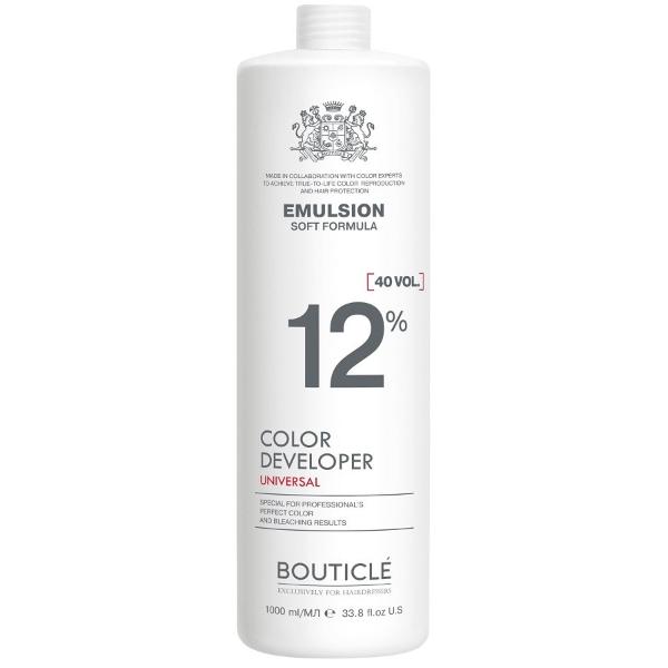 В соответствии с этой инструкцией, смешайте необходимое количество окисляющей эмульсии "Bouticle Developer Emulsion" с профессиональным красителем или средством для обесцвечивания.