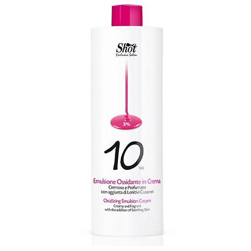 Применение: оксидант Shot необходимо смешивать с красками гаммы Shot Color в соотношении 1,5 части окислительной эмульсии на 1 часть красителя. Для оттенков ряда суперблонд на 1 часть нужно 2,5 части окислителя.